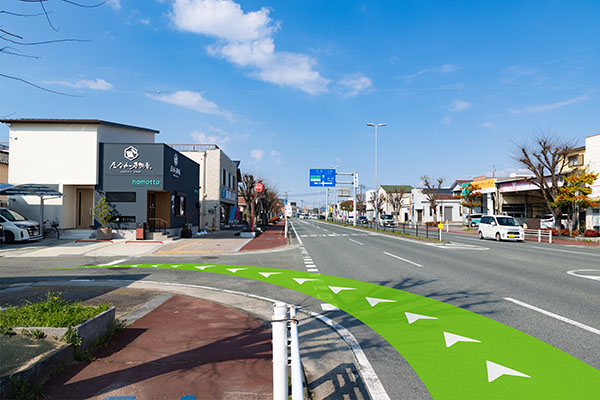 ゆめタウン大牟田を右手に見ながら、国道208号線を東方向へ直進します。