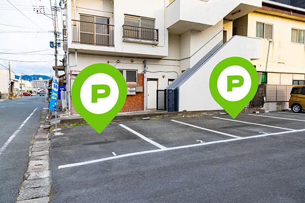 店舗裏に専用駐車場を2台分ご用意しております。 1番・3番をご利用ください。